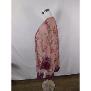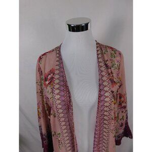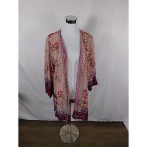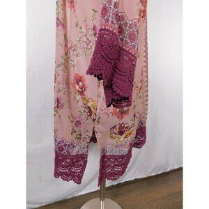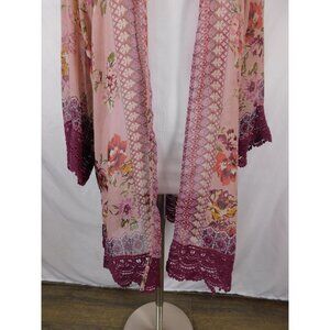 Mason & Belle Kimono Cardigan Womens Large Pink Floral Lace Trim Boho Open Front