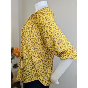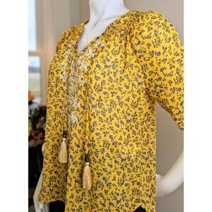 Mason & Belle Peasant Top Embroidered Yellow Floral Boho Flowy Size Small