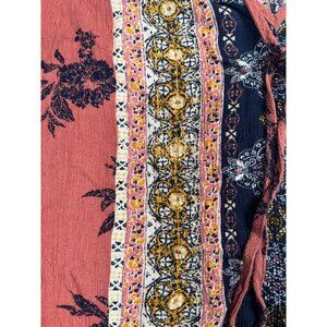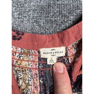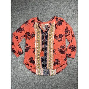Mason & Belle Women's Boho Floral Print Blouse Long Sleeve Tassel Tie Large