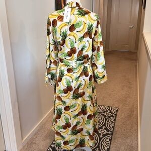 Mason Grey fruit print TROPICAL SMOOTHIE women's classic short robe with waist tie and pockets. Length is around 45 to 46 no holes no rips from non-smoking home.