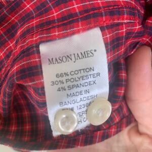 Mason James Red Plaid Shirt XL Long Sleeve Red Navy Blue
