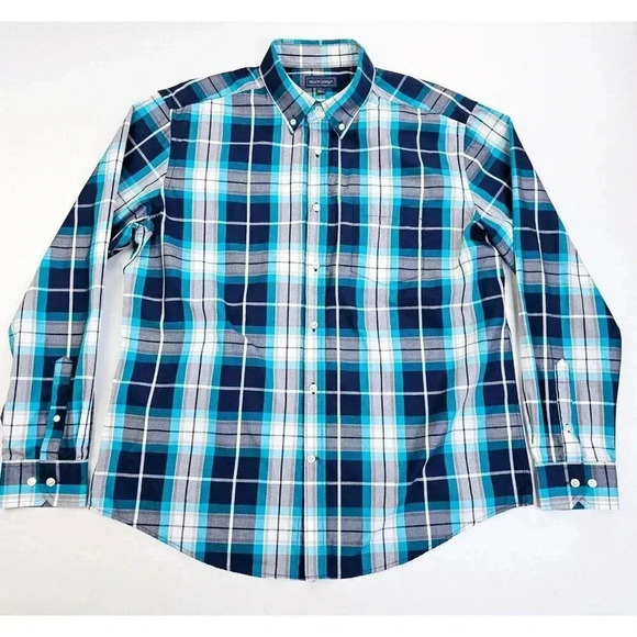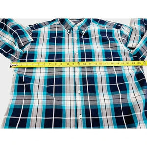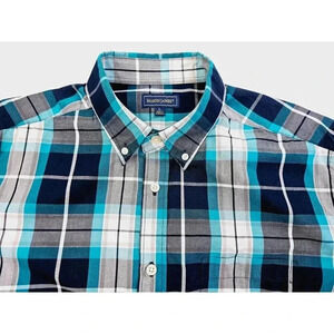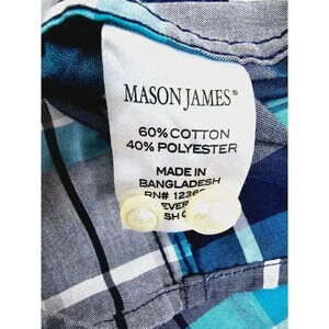 Mason James Size Large Men's White Aqua Gray Blue Check Button Down Pocket Shirt