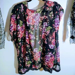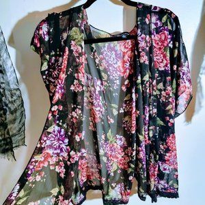 ⭐Mason & Mackenzie ⭐Black Colorful Floral ⭐️ Kimono Cardigan ⭐️ Flowing and FAB