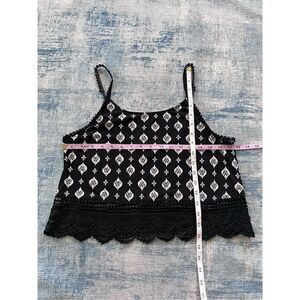 Mason + Mackenzie Black White Crochet Lace Trim Cami Crop Top Medium