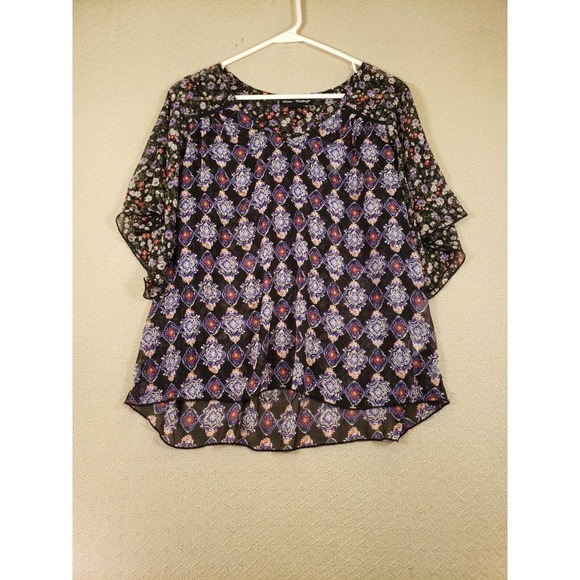 Mason + Mackenzie Shirt Womens Small Black Floral Round Neck Blouse Pullover