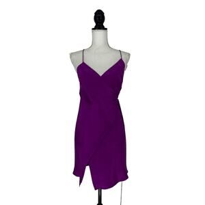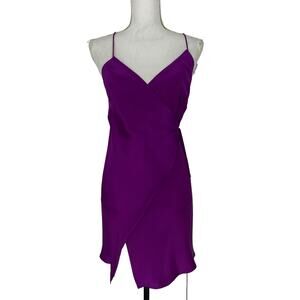 Turn heads in this sultry silk wrap dress by Mason by Michelle Mason. Crafted in 100% silk and dyed in a vibrant fuschia hue, this strappy mini features a flattering V-neckline, delicate thin shoulder straps, and a wrap front that ties into a flirty silhouette. The open crisscross back adds an extra touch of allure—perfect for cocktails, date nights, or special events. Fully lined and made to drape beautifully on the body.
