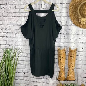 Mason green cutout shoulders short sleeves drawstring waist shift dress size 6