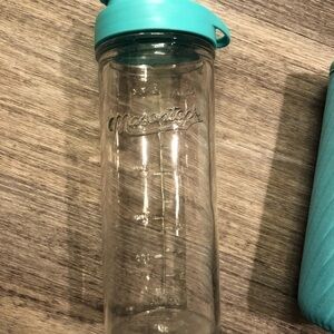 Mason tops glass water bottle with coozy