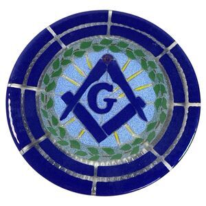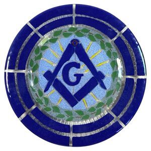 This stunning 7.5-inch fused glass dish is a true collectors treasure! Featuring the iconic Free Mason square and compass, its meticulously handmade and kiln-fired by artisan Silva in 1980.