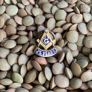 Masonic Temple 25 Years Service Sterling Silver with Diamonds Accent Lapel Pin