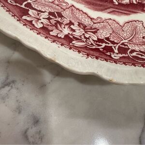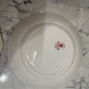 Mason pink vista Red and White ironstone antique Plates Set 4 dinner plates
