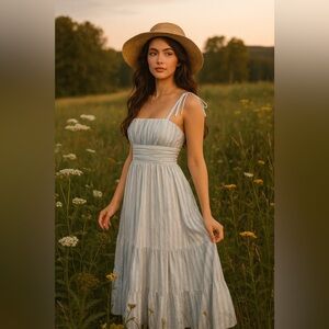 Mason’s Daughter sleeveless blue striped tiered maxi dress size medium sundress