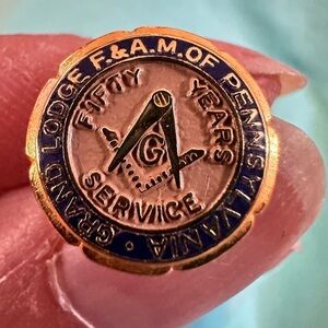 Vintage Masonic Pin 50 Years Of Service 10k G.F. Grand Lodge Of Pennsylvania 19W