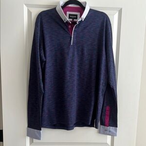 Masood Long Sleeve Polo Shirt - Navy and Magenta 5/XL