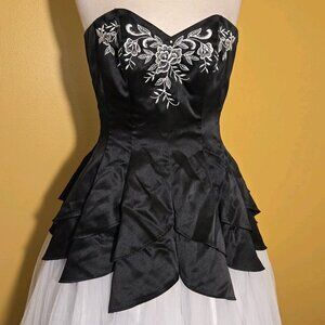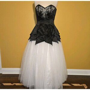 Masquerade Ball Gown Dress Black White Strapless Size 7 8 Embroidered Prom Tulle