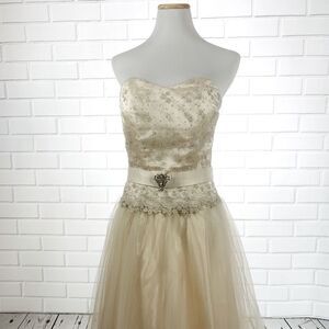 Masquerade Cream Strapless Sequin Ballgown - Size 13