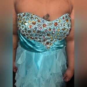 Masquerade Floor Length Strapless Aqua Colored Formal Gown Size 17/18