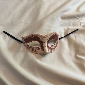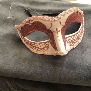 Women’s gorgeous masquerade mask with pink glitter and lace trim details.