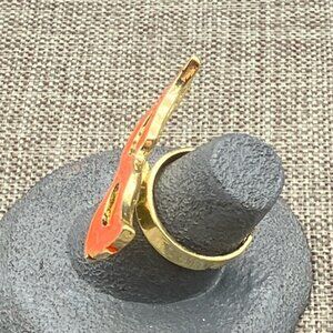 Masquerade Mask Adjustable Ring Gold Orange Mardi Gras Halloween Party Retro