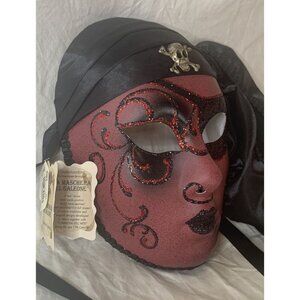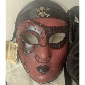 Masquerade Mask Black & Red Pirate Style - Pier 1 Store - Hand made In Venice
