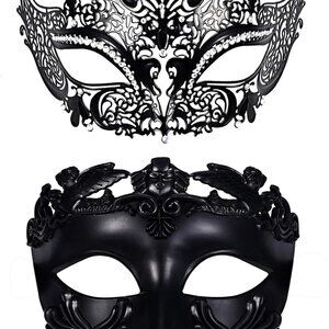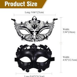 FITS EVERYONE ONE SIZE FITS ALL. This black couple masquerade masks set comes with a black elastic band that fits most head sizes, fits comfortably on face, and is easy to manually adjust to your face shape to keep it in place without falling off easily.