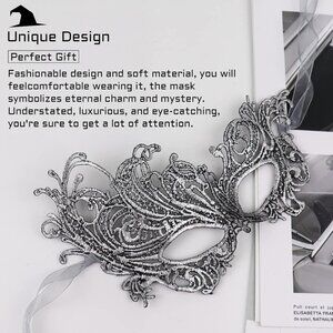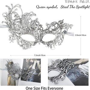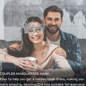 About this item Masquerade Mask: Mysterious style made of soft lace which is perfect masquerade mask for women on costume party,halloween party,mardi gras party, cute and sexy style fit for various outfit dress Queen of Mysteries: This lace ball mask is designed with the queen's mystery, making you the brightest in the whole party, very eye-catching and amazing! Very suitable for costume party wear! Double Ribbon Design: