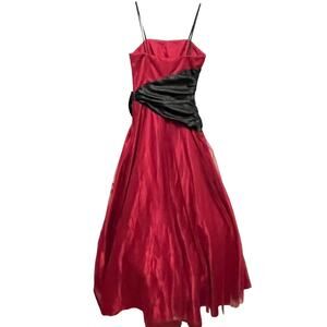 Masquerade Prom Ball Gown Dress Junior Size 3 Women Red Black Swiss Dot Retro