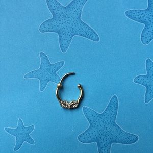 Elegant yet quirky masquerade septum clicker which features a sparkly rhinestone mask front and center. Worn a few times but has since been sterilized.