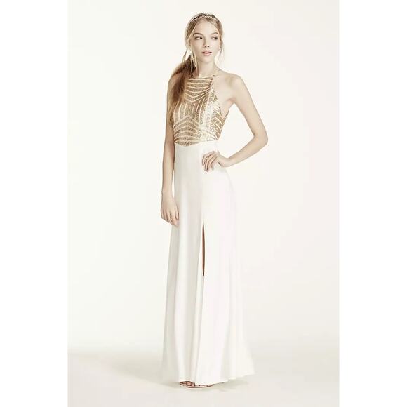 Masquerade Sequin High Neck Halter Prom Dress with Side Slit Size 9 NWTAI