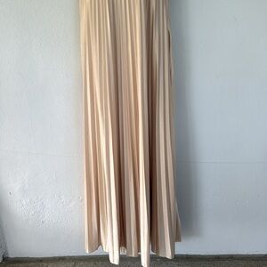 Masquerade champagne gold pleated v-neck mesh illusion back gown size small