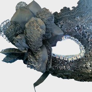 Masquerade mask black lace with sequins ribbon tie on