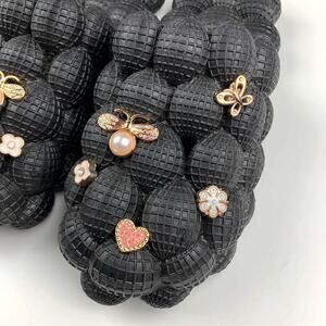 Massage Bubble Slides Black Slip On Sparkly Charms Flowers Butterfly Women's 10