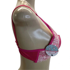 Massam Hot Pink and White Floral Lace Padded Bra Made in Brazil New with Tags