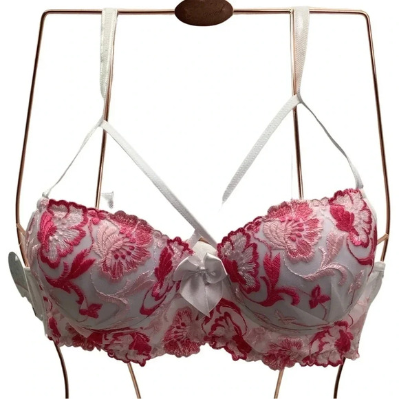 Massam Size Large White & Pink Floral Underwire Bra Made in Brazil. New with Tag