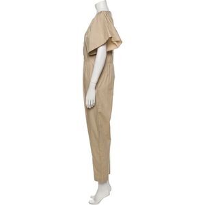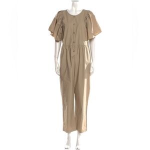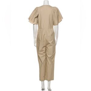 Masscob poplin puff sleeveve jumpsuit in tan/khaki. Size 36 (Spain) US size 4 fits a S.