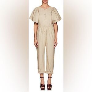 Masscob Women's Poplin Puff-Sleeve Jumpsuit - Nudeflesh Assembled in Spain, Masscob's jumpsuit is crafted of tan poplin.