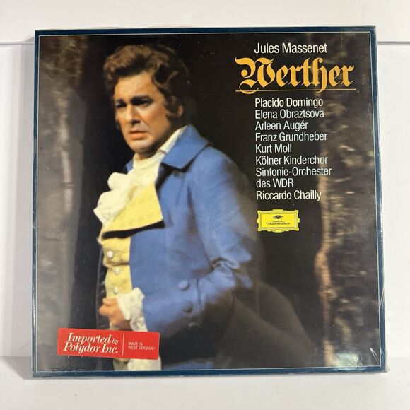 The Massenet Placido Domingo Sinfonie Orchester WERTHER 3 LP BOX SET 2709 091 is a high-quality vinyl record featuring the famous artist Placido Domingo, along with Riccardo Chailly and other notable performers.