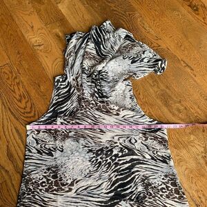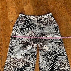 Gorgeous lightweight 2 piece set, cape over short sleeves tank top shirt, pants size zipper hook closure pockets ,wide leg (minor spot on front /back leg ) otherwise great preloved condition smoke/pet free