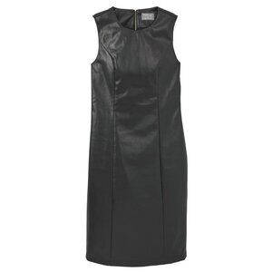 Stylish form-fitting faux leather sleeveless dress. Front princess seams. Zip-up back closure. Dress has a centered back vent slit. Dress up with a leather jacket or fur vest. Note: Dress tag was removed but never worn. *Pricing is non-negotiable.
