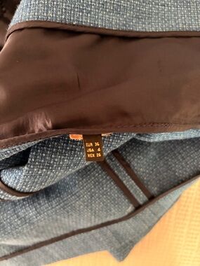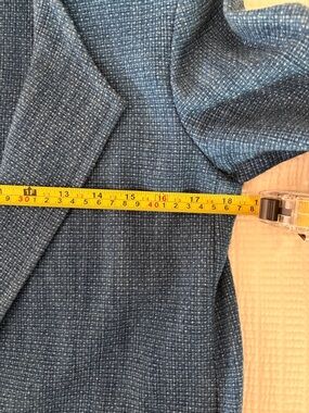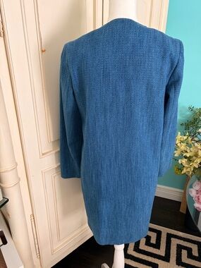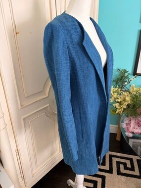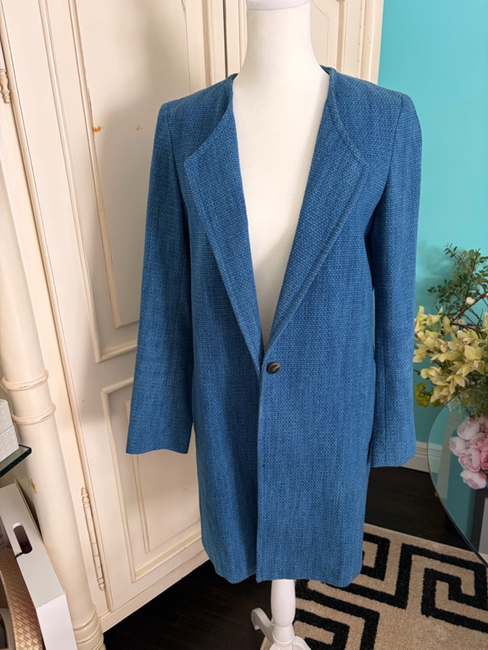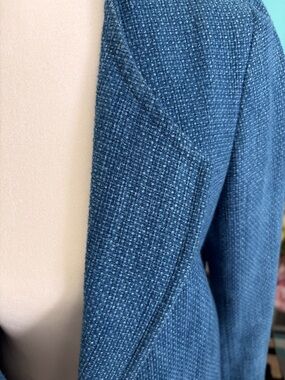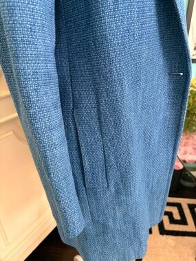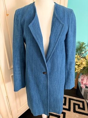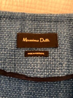 Classic Massimo Dutti jacket in textured blue tweed. Clean, versatile style. Ready to wear. Excellent condition. Fabric tag removed but looks to be a cotton blend. Pulls together an outfit so easily from jeans to a skirt or dress. Gorgeous color. Smoke free home.