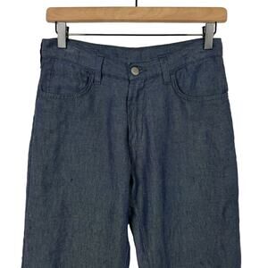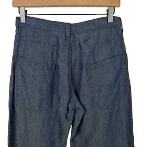 Massimo Alba | Alosa Navy Blue Linen Wide Leg Raw Hem Cut Relaxed Fit Pants