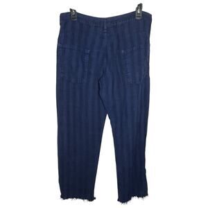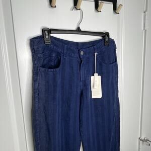 Massimo Alba Pants Women's Size 26 Navy Blue Linen Raw Hem Cut Relaxed Fit Pants