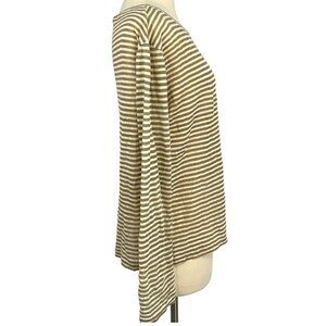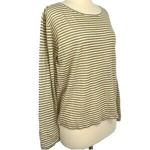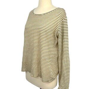Massimo Alba Size L* Top Beige White Stripes Long Sleeve 100% Linen *FLAW*
