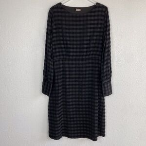 Massimo Alba size L long sleeve black midi sheath dress velour plaid side zip with pockets