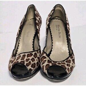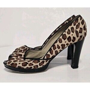 Massimo Baldi Size 8 Beige Black Leopard Cheetah Patent Leather Peep Toe Heels