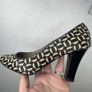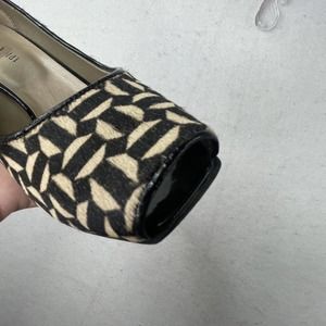 Massimo Baldi Women's Geometric Print Leather Slip-On Peep Toe Heels Size US 9 B