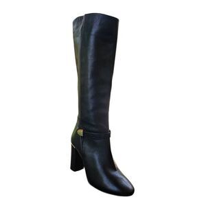 Massimo Baldi Tall Black Leather Boots Gold Hardware Size 38 ( ) Ankle side zip 4" block heel.