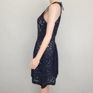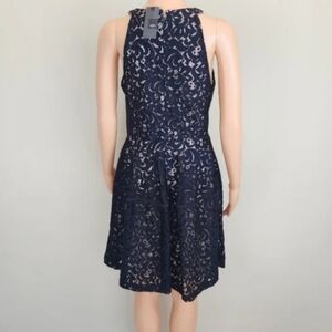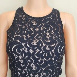 Elegant sleeveless lace dress. Perfect for special occasions. Features intricate lace detailing.