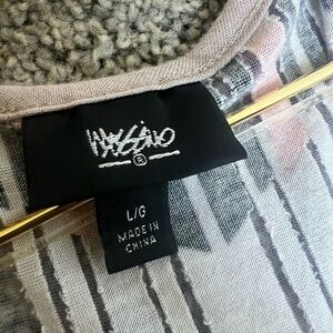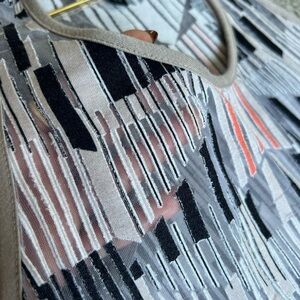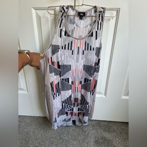 Chic tank top with bold geometric design. Features black, gray, tan, white and peach accents. Has little stains, only needs a good wash and it will be as good as new.