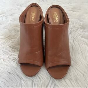 Massimo Brown Pleather Open-Toe Mule Heels Size 7.5